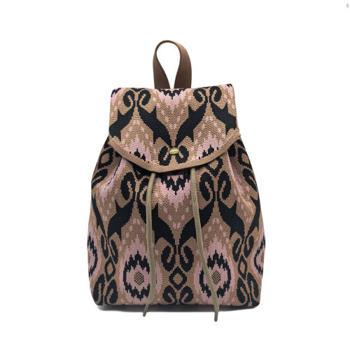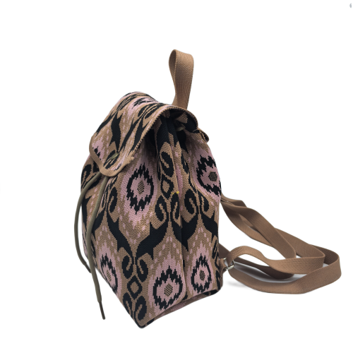 Brown Bohemian Knit Backpack For Women Casual Shoulder Bag