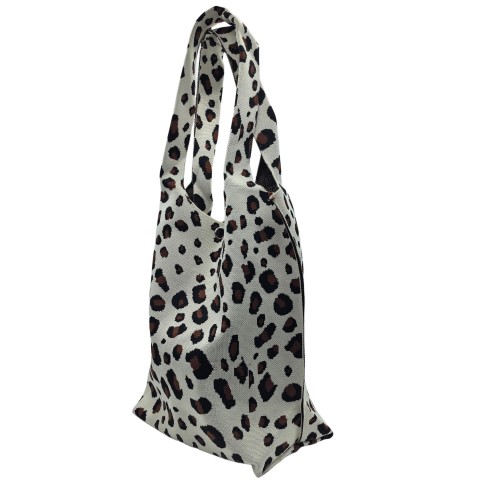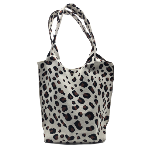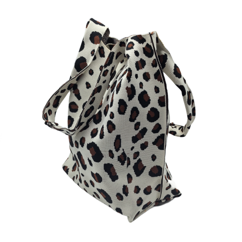 White Leopard Print Knitted Shoulder HandBag For Women Tote Bag Shopping Bag
