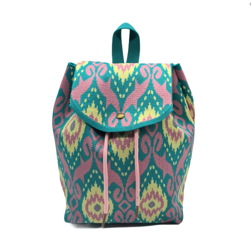 Green Bohemian Knit Backpack For Women Casual Shoulder Bag